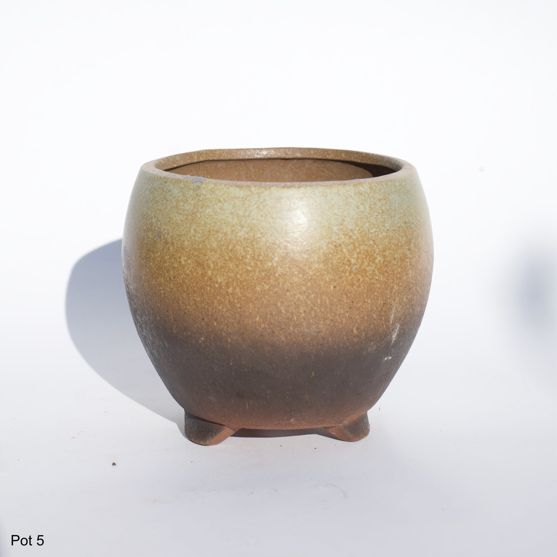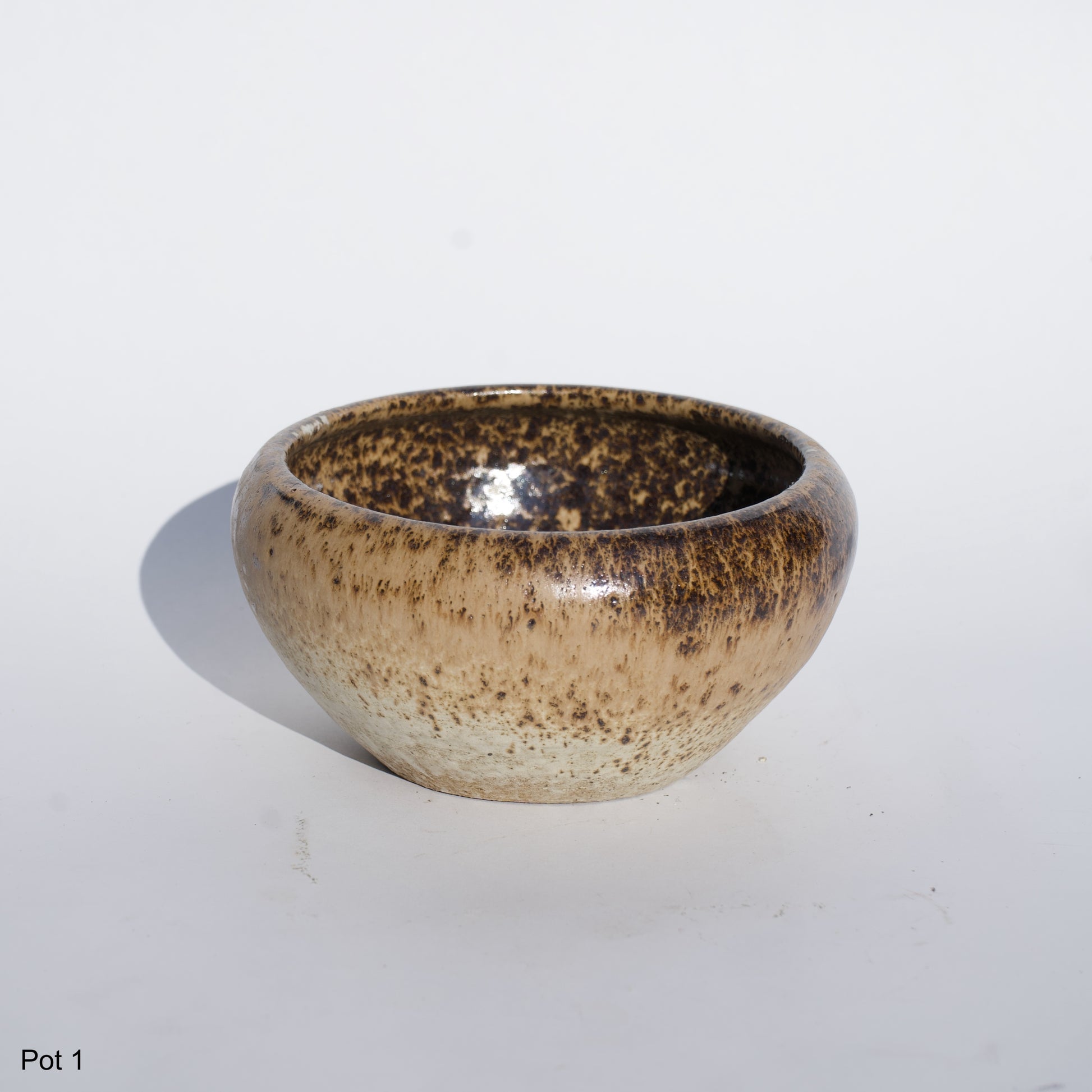 4" Ceramic Brown & Tan Glazed Pot
